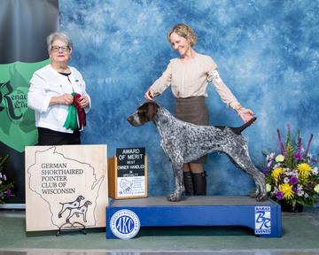 Charlie is our pick male from our 2022 Louie X Halle Litter. He displayed the conformation we were looking for from an early age. Charlie has had a very successful show career. He was the first in the litter to finish his championship at just 9 months of age going breed from the bred by class! He quickly earned his GCH and is currently working towards his GCH Bronze. Charlie has earned multiple Best of Opposite in Specialty shows with his owner Denise. He earned his Junior hunter with ease and is currently in training for Master Hunter with his first tests planned for 2024. Charlie has the natural bird drive and trainability any hunter would love to have. He has a great nose, a natural steady and stylish point, and a natural retrieve. His desire to please has made training for obedience, rally and hunt tests easy. Charlie has earned his rally excellent title and is working towards his RAE and RM as well as obedience titles.