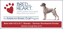 To breed Champion, versatile, conformationally correct German Shorthair Pointers with natural hunting ability, trainability, and pleasing personalities creating ideal family dogs, hunting companions, and competitive show dogs.