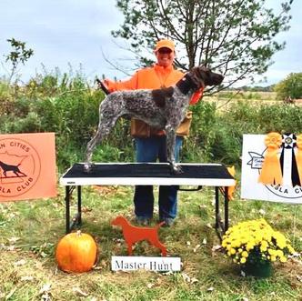 “Murray” is a great example of the versatile GSP. He does well in both the conformation and obedience rings, as well as in the field. In less than 2 years, he went from earning his first point towards his AKC Championship to earning his AKC Bronze Grand Championship, all Owner Handled. He has multiple Sporting Group placements and has won Best of Breed over some of the top dogs in the country. Murray also earned his UKC Championship in only 2 weekends showing, with multiple group placements and group firsts, and going Best in Show and Reserve Best in Show. He earned his AKC Companion Dog title at 2 years old in one 3-day weekend, with all 1st place qualifying scores with competition. He has now earned his Companion Dog Excellent title and Rally Excellent Title. Murray is a beast in the field and has earned his Master Hunter title, Master Hunter Advanced (score of 8 or higher in all areas) as well as his Lifetime achievement (12 MH passes).